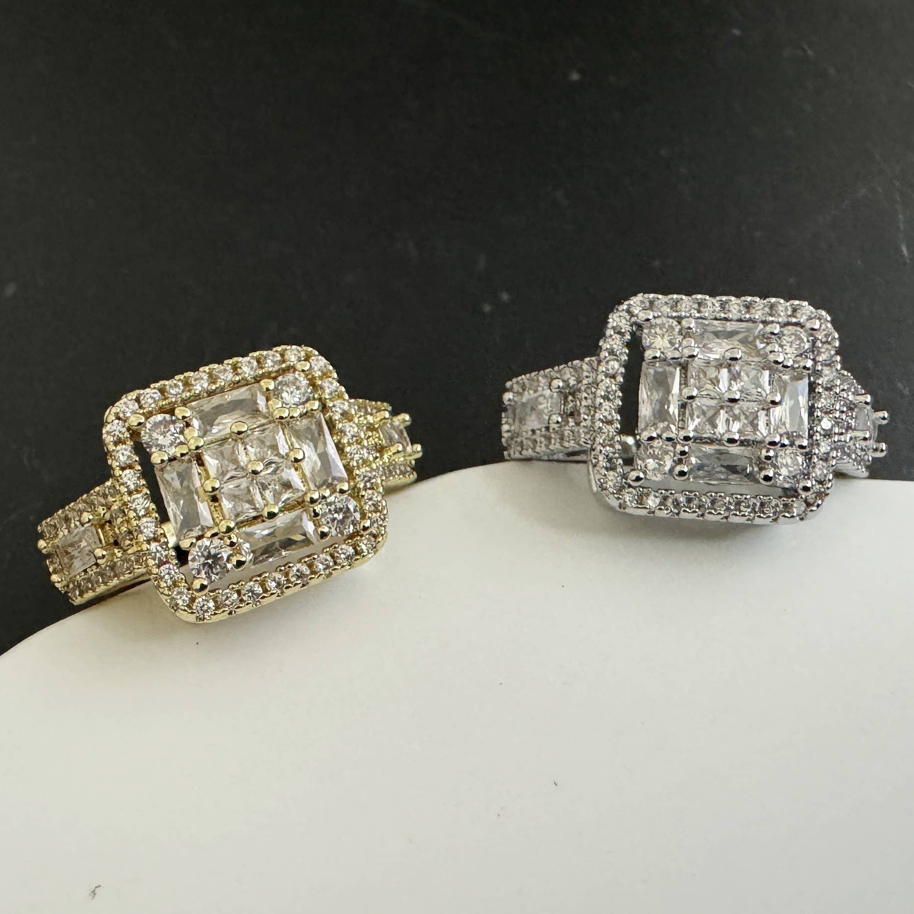#statementring #czring #czjewelry #haloring #squarecutring #goldplatedjewelry #hypoallergenicjewelry #adjustablering #eveningstyle #everydayglam #womensjewelry #giftforher #madeinusa #rhodeislandmade #fashionjewelry #jewelrytrends