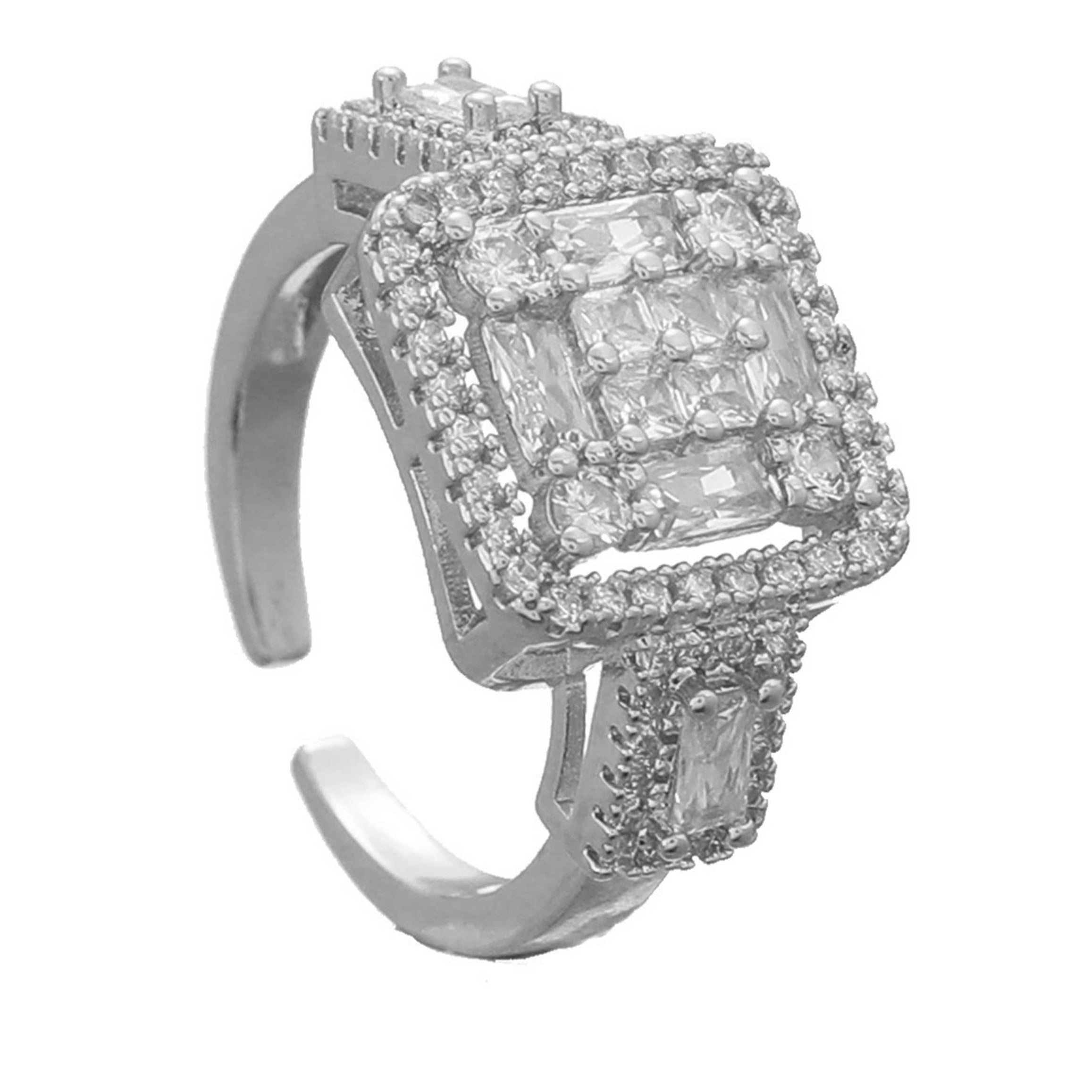 Make a luminous statement with this square-cut CZ ring, designed with a high-shine center and pavé accents that catch the light from every angle. Choose your finish—sleek white or radiant yellow gold plating—and enjoy the ease of an adjustable fit for everyday comfort and evening elegance.
