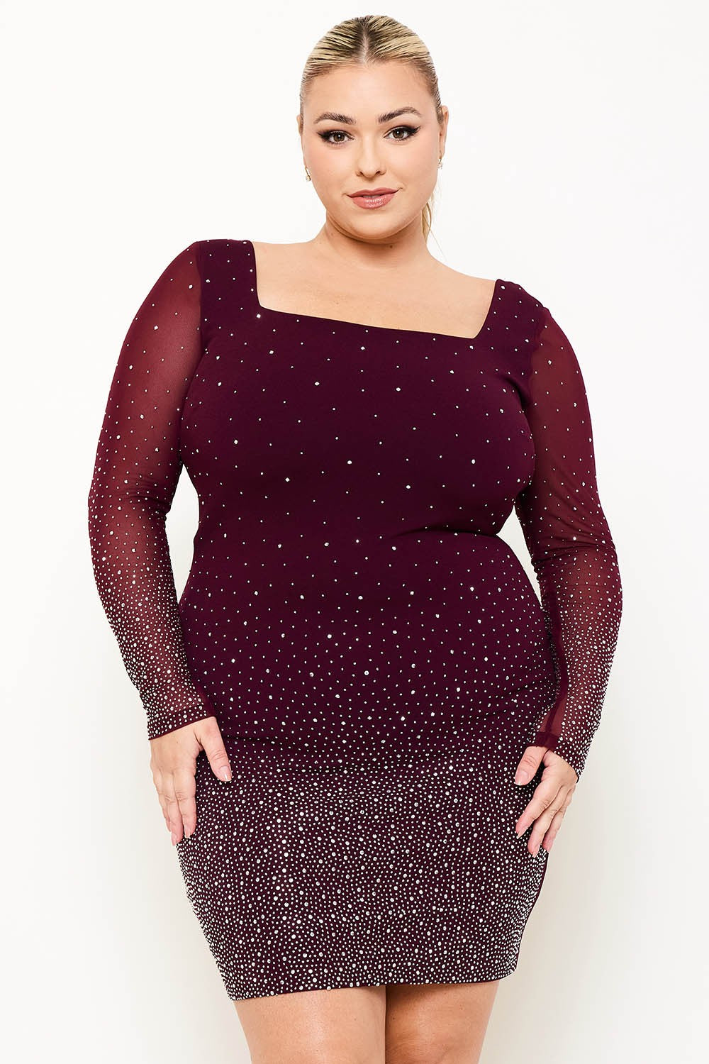 Ombre rhinestone sparkle mesh plus-size mini dress