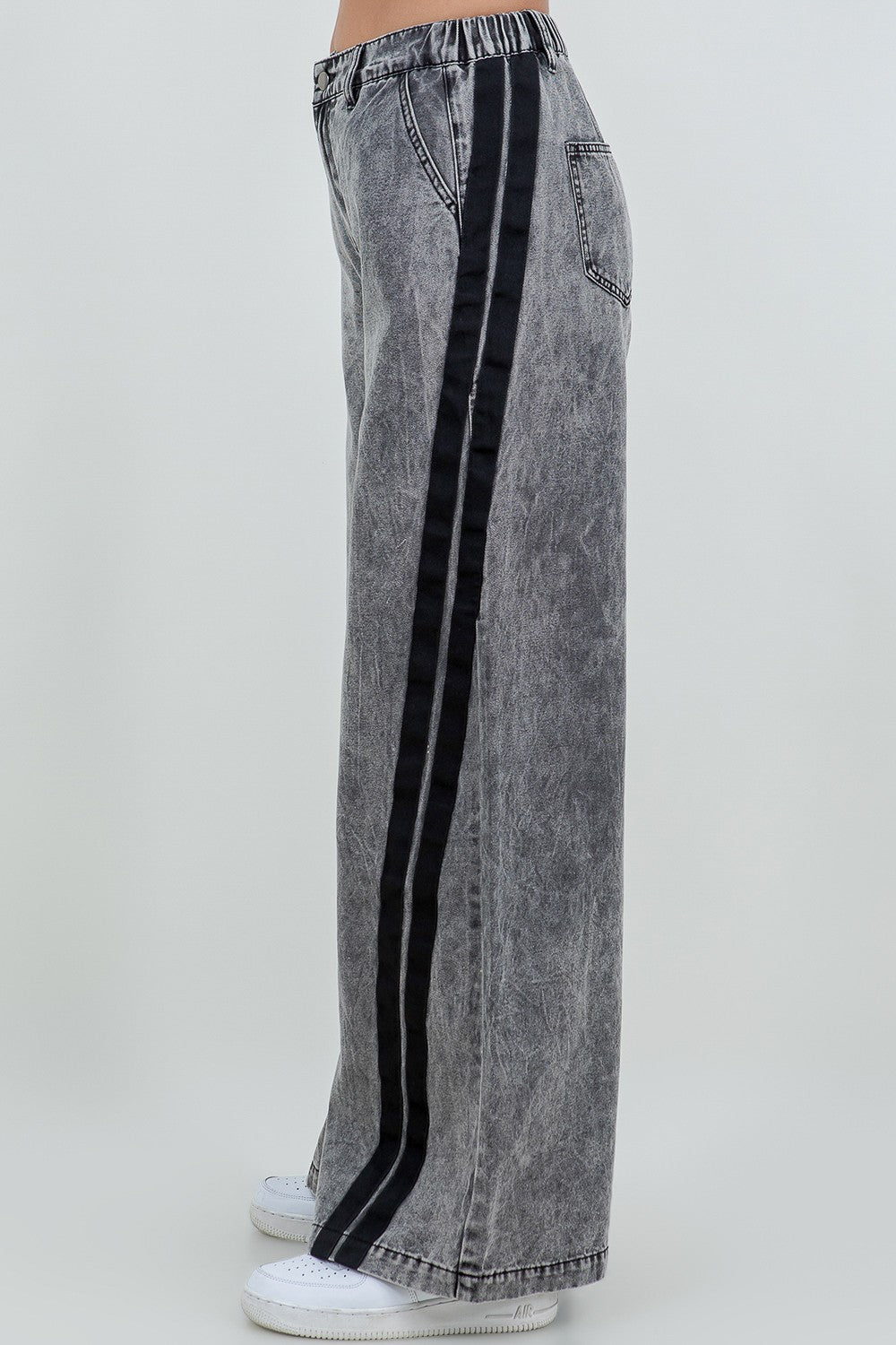 The Street Stripes Wide Leg Jeans deliver a relaxed, lived-in feel with a striking washed finish and bold side stripe detail. Designed to balance structure and ease, these jeans feature a flattering high rise, soft stretch denim that holds its shape, and a wide, confident silhouette. Effortless to style and endlessly wearable, they bring that casual-cool energy to everyday fits.