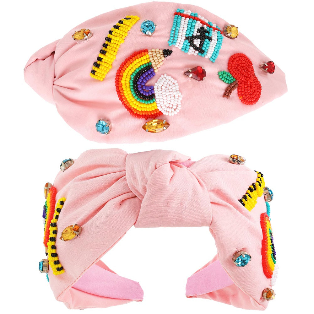 TEACHER Tools Pink Beaded Crystal Top Knot Headband
