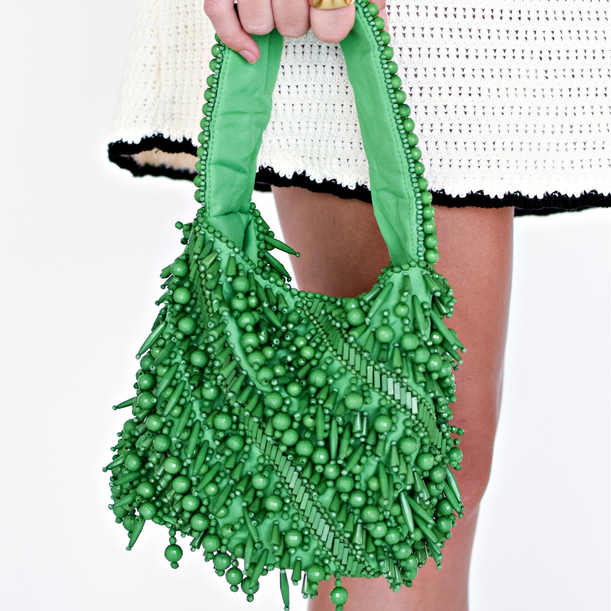 The thick, beaded purse handle adds a touch of boldness while the spacious, lined interior offers plenty of room for your essentials.