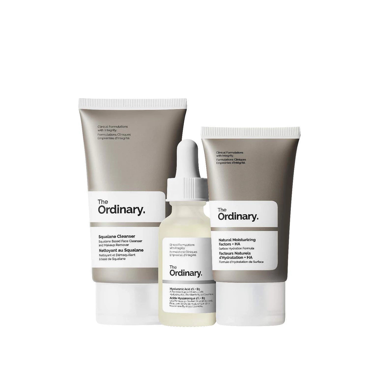 A daily hydration ritual made simple. This essential three-piece set from The Ordinary features bestselling formulas designed to cleanse, plump, and reinforce your skin’s moisture barrier. Ideal for all skin types experiencing dryness or tightness, this routine builds hydration from the very first step.