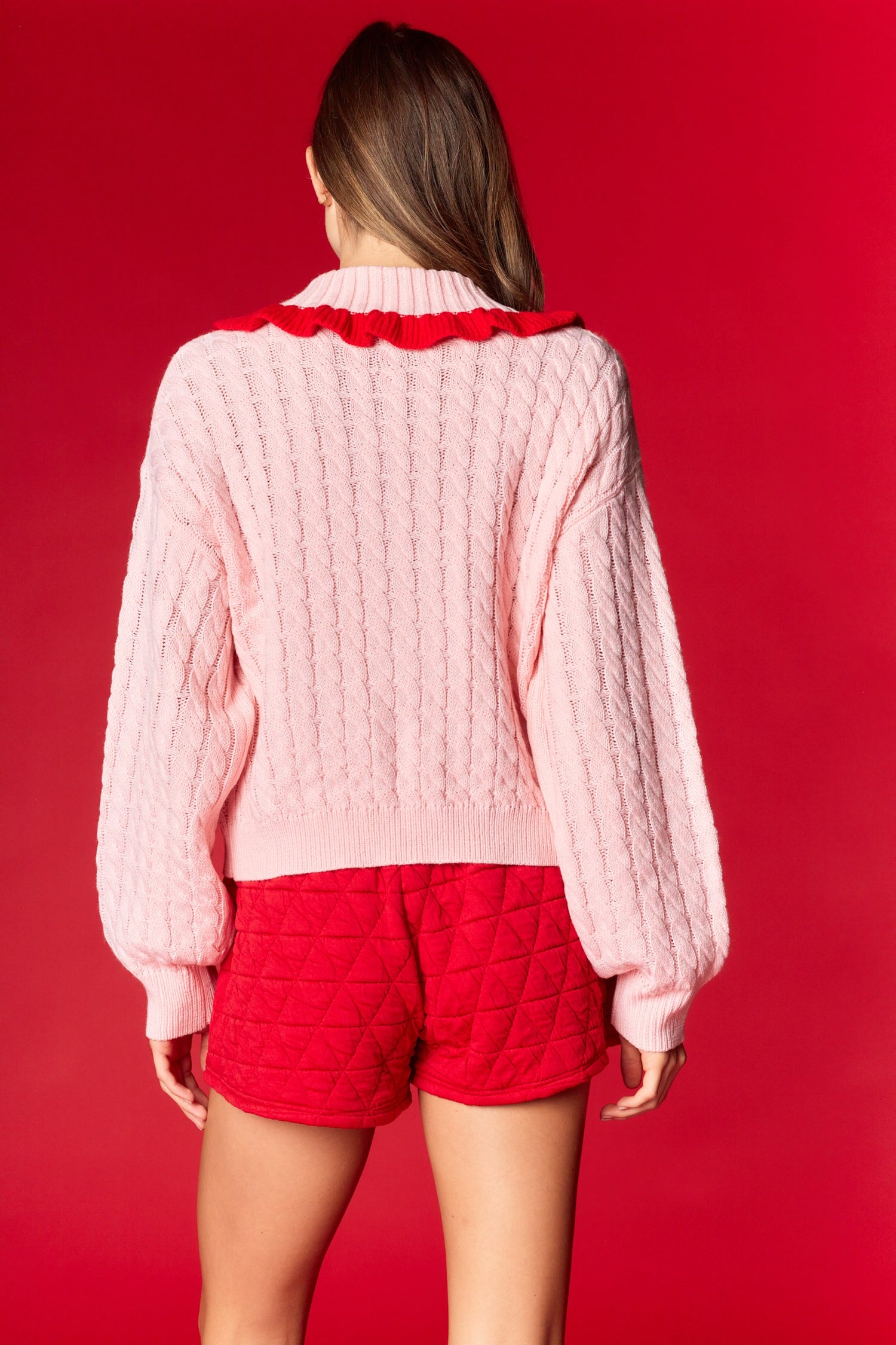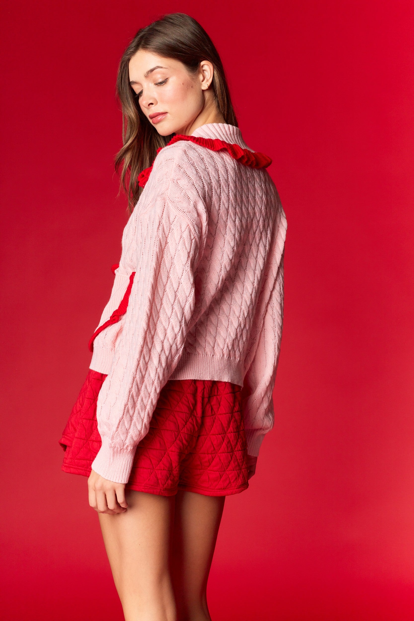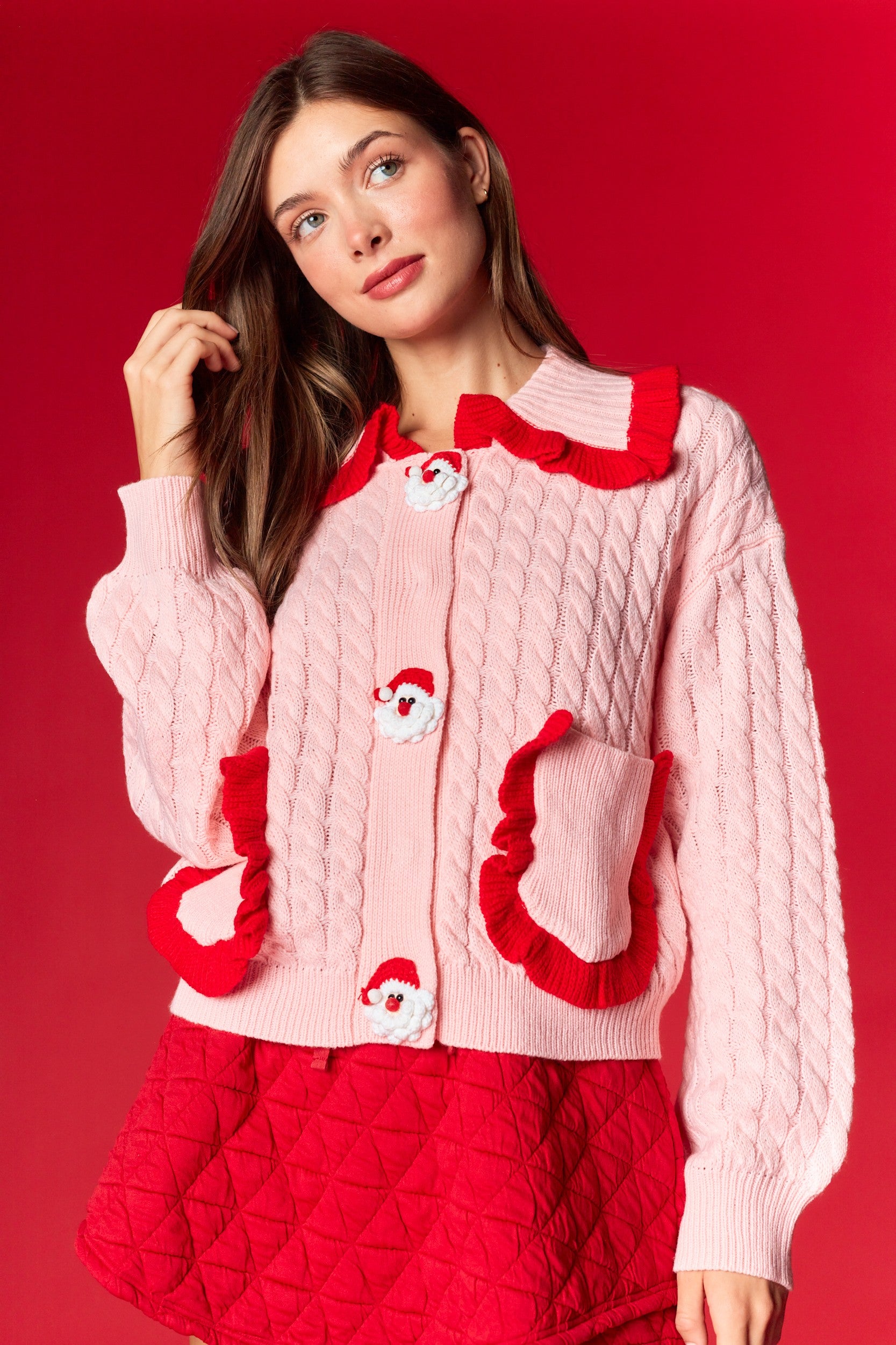 Festive, feminine, and full of holiday cheer β the βSleigh All Dayβ Cardigan brings playful charm to your winter wardrobe. Featuring retro-inspired Santa face patches, a ruffle-trimmed collar, and cozy cable knit texture, this statement cardigan is perfect for spreading seasonal joy in style.