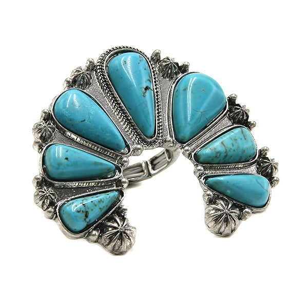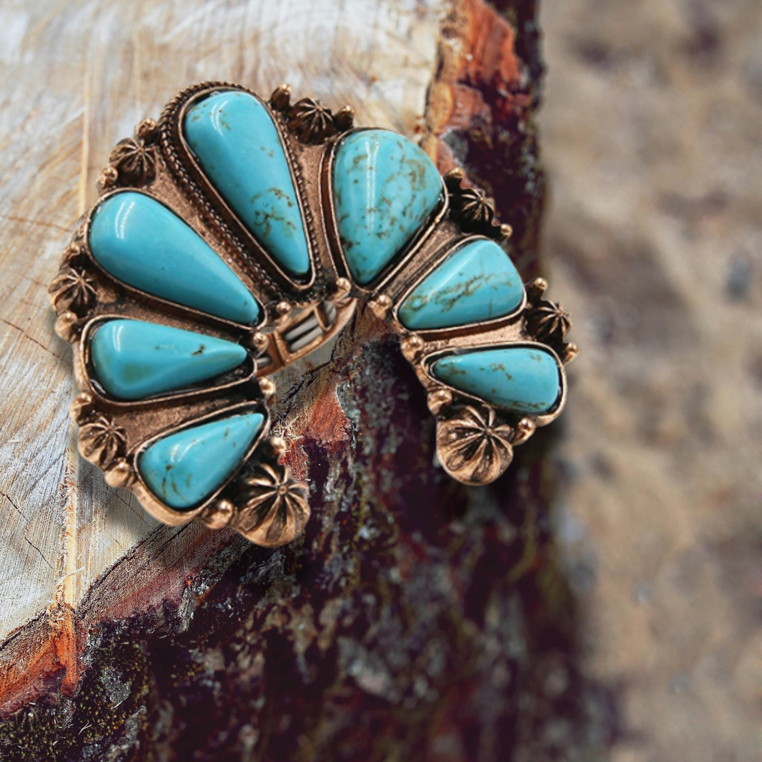 #westernjewelry #turquoisering #squashblossom #bohowestern #statementring #stretchring #copperring #silverring #cowgirljewelry #electroplatedmetal #womensjewelry #giftforher #madeinusa #rhodeislandmade #turquoisestyle #countrycharm #westernstyle #everydayglam #festivalstyle #boldaccessories