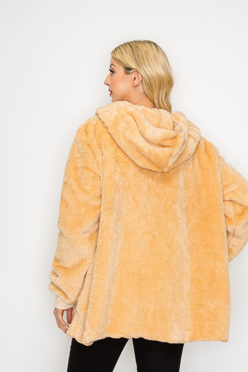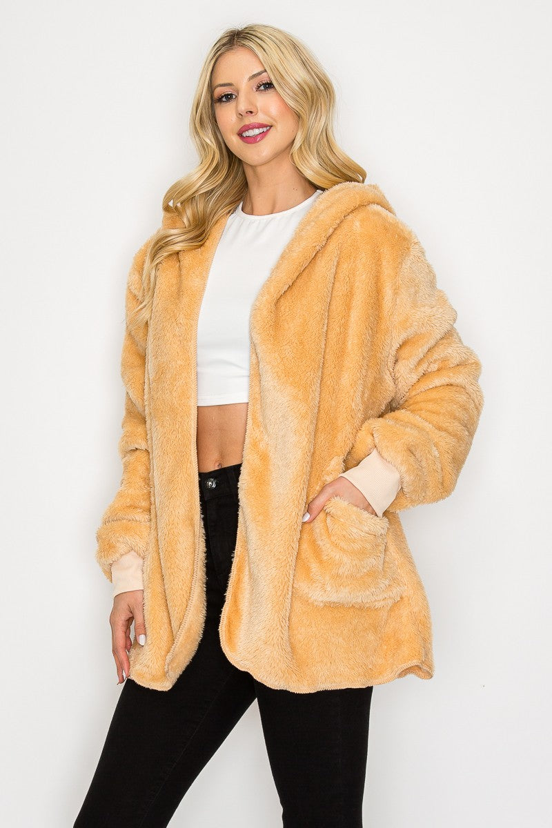 The Warm & Fuzzy Feelings Hoodie Jacket is the piece you’ll reach for when you want to feel wrapped in pure comfort. Made from ultra-plush sherpa fleece, this cozy hooded jacket delivers that soft, snuggly, effortlessly-chic vibe — think retro teddy bear coat meets “mob-wife winter” energy. Features an easy open-front design, roomy patch pockets, and a soft hood for cuddly warmth. Whether you’re running errands, grabbing coffee, or heading out for a winter night with layered sparkle, this jacket keeps you warm while still looking effortlessly stylish.