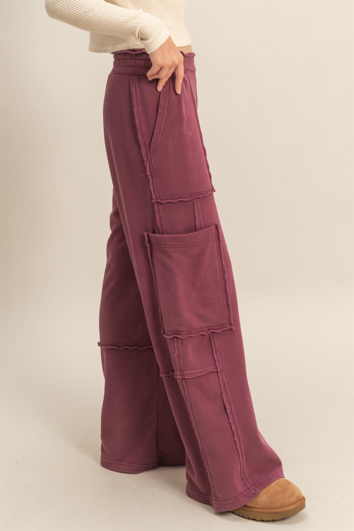 The Weekend Warrior Burgundy Cargo Sweatpants bring relaxed comfort with a touch of utility-inspired style. Designed with a loose, oversized fit and elastic waistband, these sweatpants offer easy movement and everyday wearability. The cargo pockets add functionality and a modern street-style edge, while the soft knit fabric provides a cozy feel. Pair with a crop top, sweatshirt, or fitted long sleeve for an effortless, off-duty look.