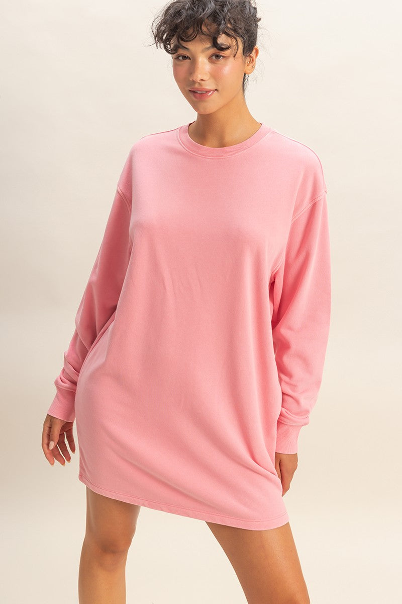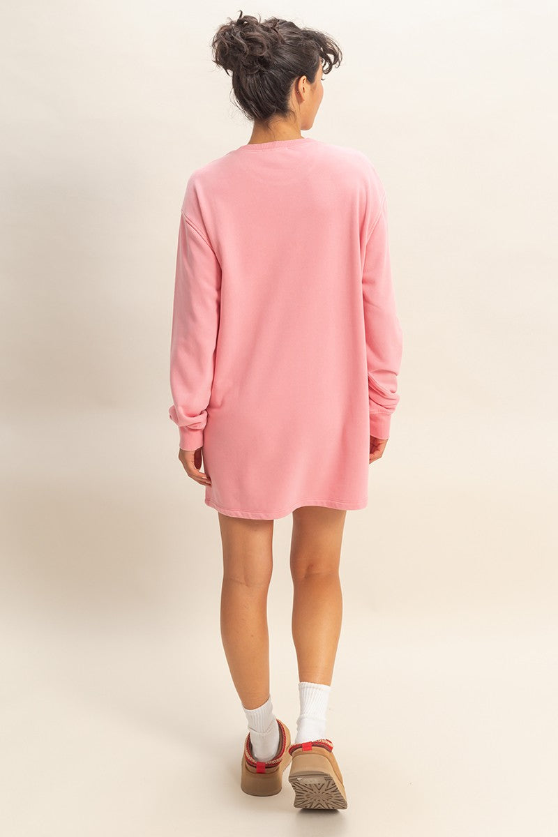 The Weekend Warrior Pink Sweatshirt Dress delivers easy comfort with a relaxed, oversized silhouette and soft mineral-washed finish. Designed with dropped shoulders and long sleeves, this mini sweatshirt dress has a lived-in feel that balances casual ease with effortless style. Pair it with sneakers for weekend errands, layer with boots for cozy brunch styling, or toss on after the gym for an elevated athleisure moment.