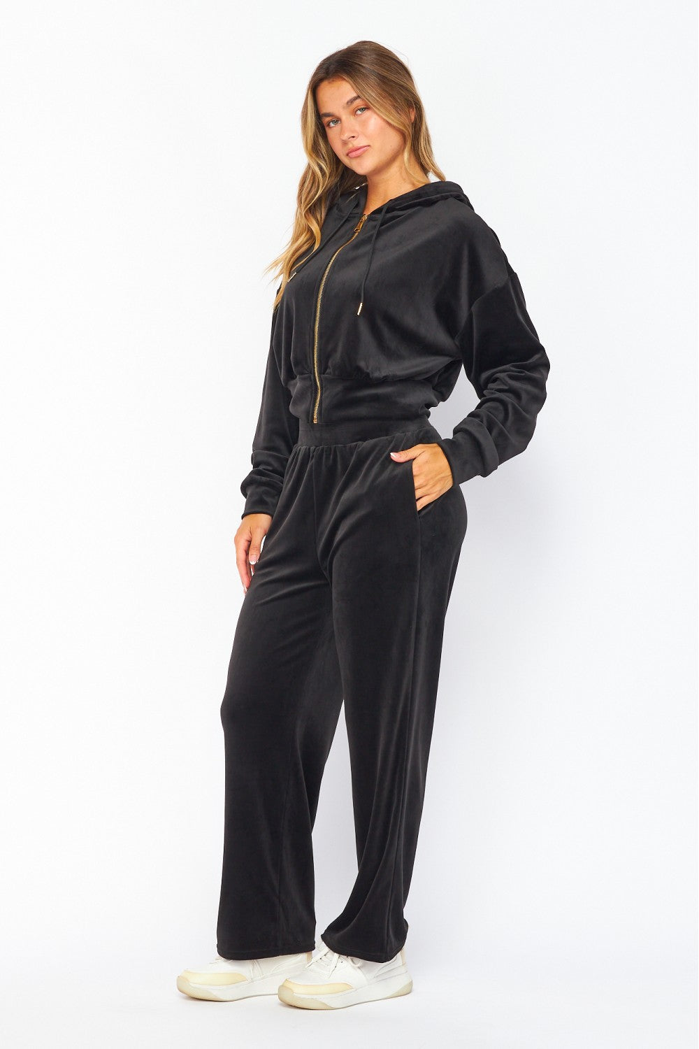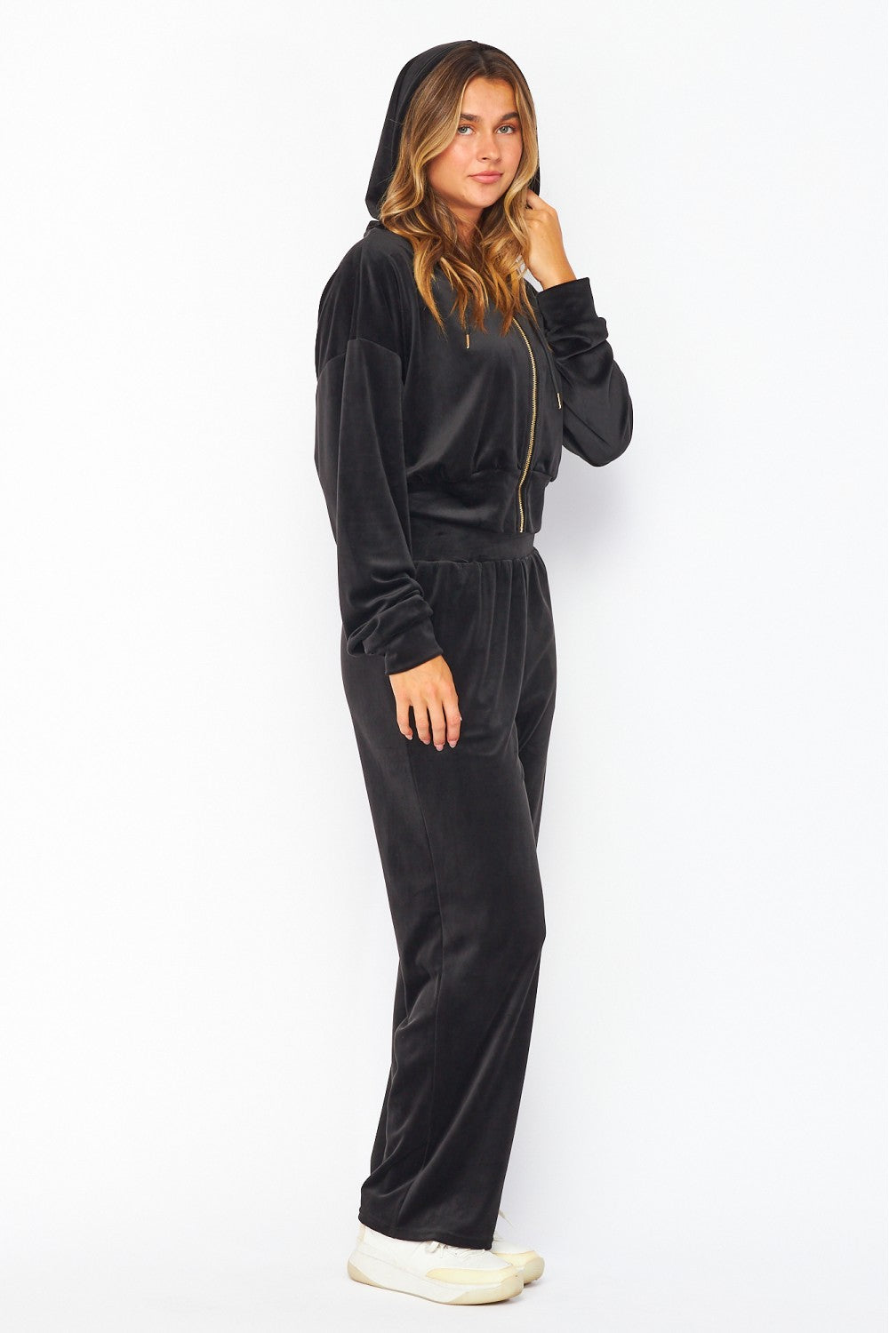 WEEKEND WARRIOR VELOUR JOGGER SET IN BLACK