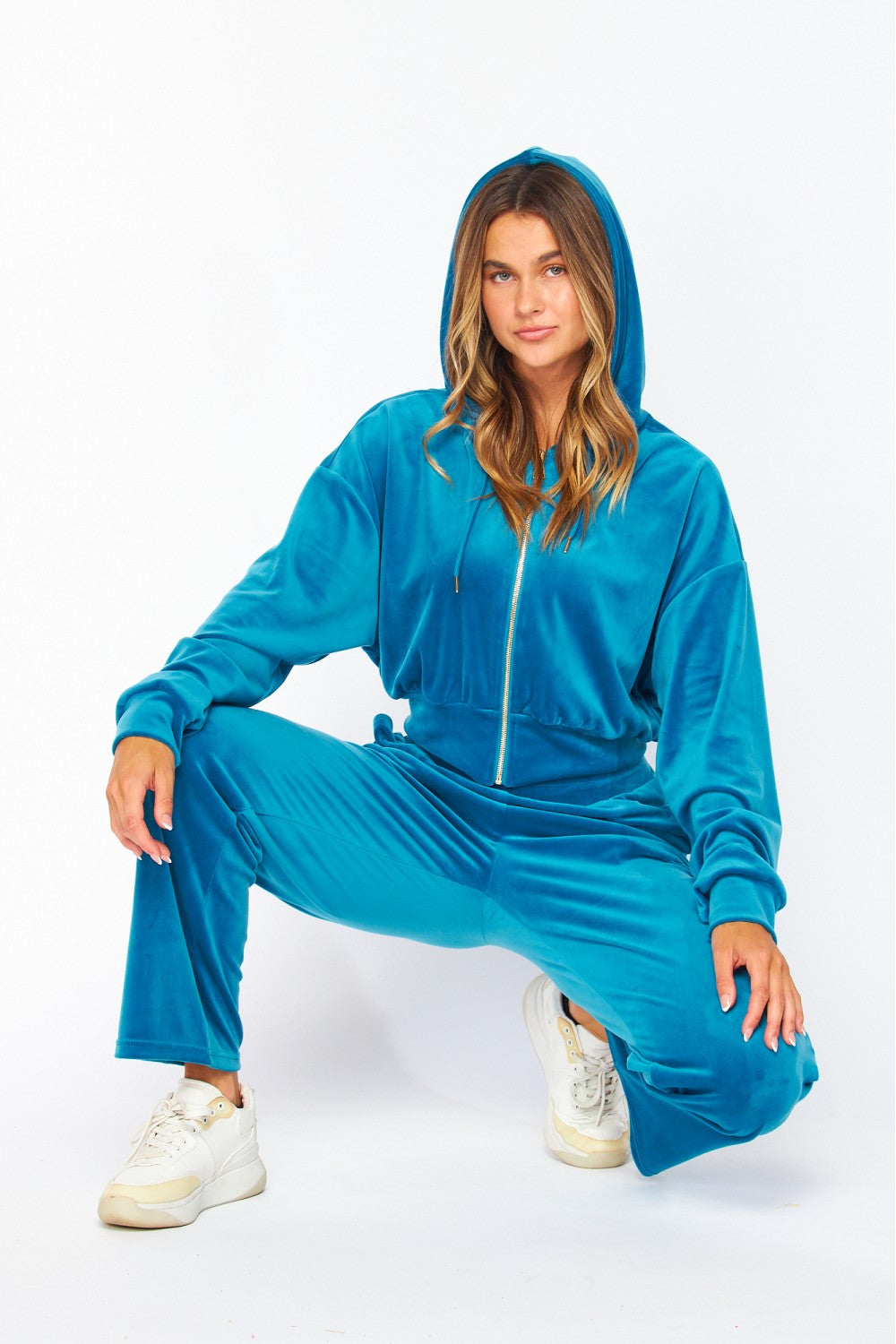 Pair with a clean white sneaker and a messy ponytail for cool-girl daytime ease. Swap in gold hoops and a sleek slip-on for nighttime lounging with a little edge. Velour doesnât judge. It just shines.Â