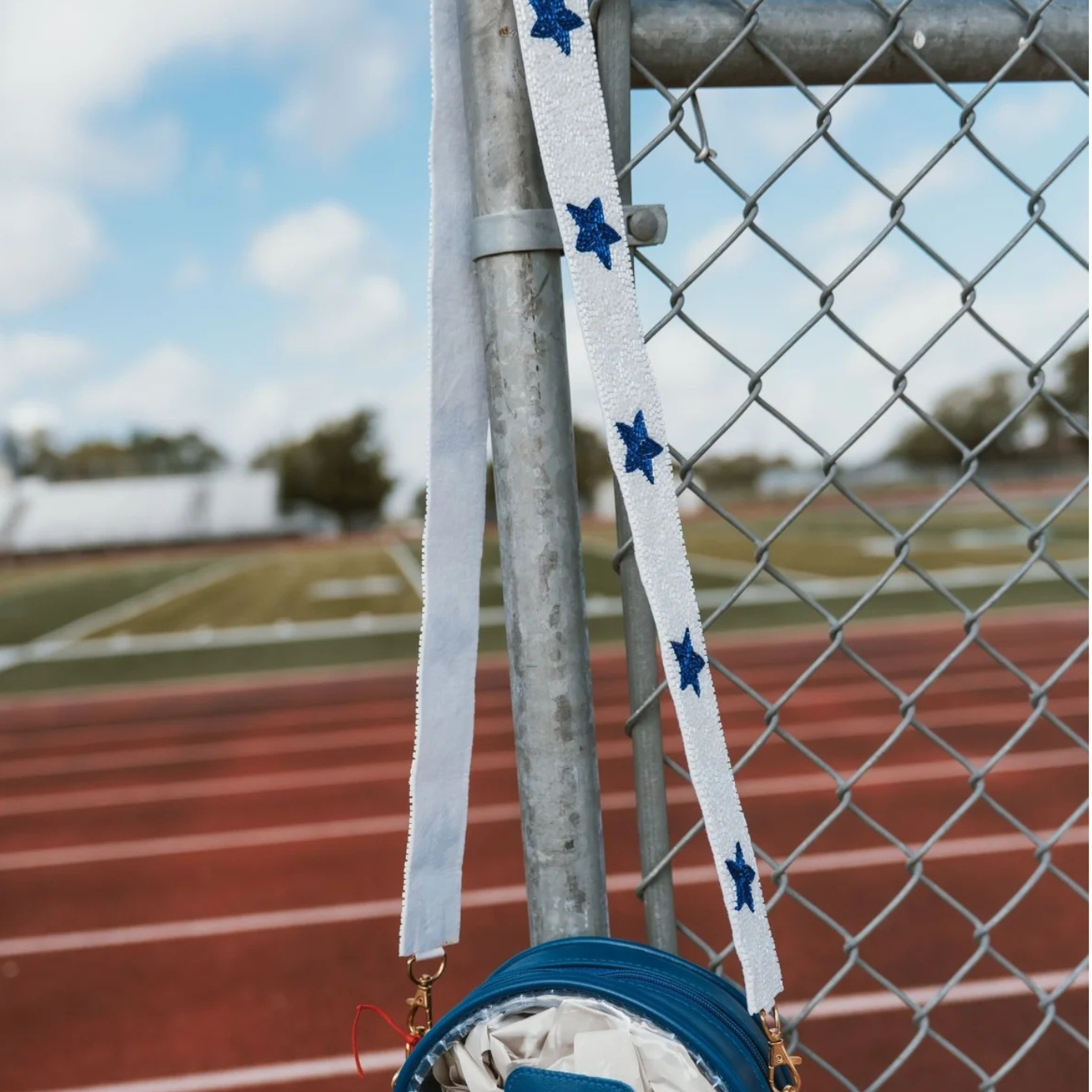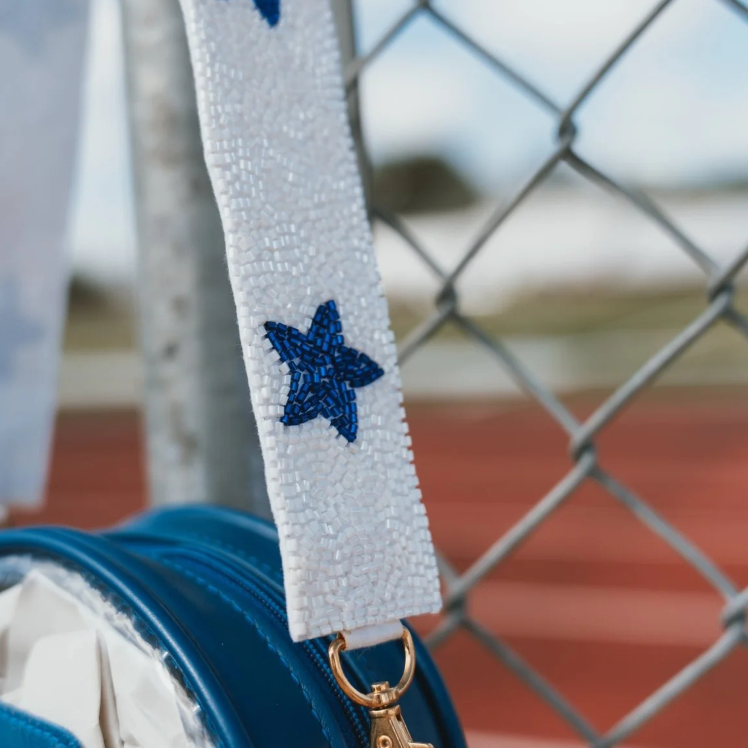White Blue Star Seed Beaded Crossbody Bag Strap
